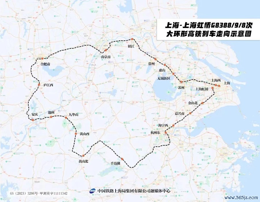 这是上海出发的首条环线高铁,也是首个跨越长三角三省一市的“超级环线高铁”。许多方面都令人兴奋,有人说,铁路部门画的这个大“圈”,是长三角三省一市多地共同绘制的“同心圈”,将助力长三角一体化发展迈向新的阶段。